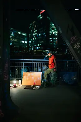 Schon seit 15 Jahren ist Silke zwei- bis dreimal pro Woche nachts mit ihrer Leinwand unterwegs, bei jedem Wetter, zu jeder Jahreszeit. Es hilft ihr im Winter, vorher heiß zu duschen. Ansonsten muss die Bewegung und die Bekleidung in mehreren Lagen beim Malen reichen. Für Silke hat die Nacht eine Magie, die sie tagsüber nicht findet. Es ist die Abwesenheit jeder Ablenkung, die große Stille, das „Komplett für sich sein“. Dieser Zustand ist fester Teil ihres Lebens geworden: eins, in dem es keinen Partner oder Kinder gibt, nicht mal einen Hund. Silke hat sich ganz der Kunst verschrieben und will frei entscheiden, wann sie wo wie lange malt. Oder eben, ob sie den Vormittag mal wieder verschläft.