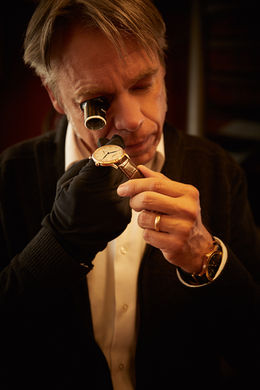 Deren zweckdienlichem Funktionsverständnis folgend produziert Hentschel nur klassische Chronometer, „ohne Schnickschnack und Schickimicki“, also ohne Komplikationen wie Stoppuhr, Mondphase oder Datum – und natürlich ohne Brillis. Mit zehn Mitarbeitern komponiert Hentschel lieber in langwieriger und schöner Handarbeit hanseatisches Understatement mit lebenslanger Garantie. Ästhetisch orientiert sich der Selfmade-Mann, der nach der Ausbildung an der Uhrmacherschule Farmsen (einem Überbleibsel der glorreichen Zeit Hamburger Seeuhren) sein erstes Geld mit dem Restaurieren von Flohmarktfunden verdiente, an der klassischen Schlichtheit von Handaufziehern der 30er- bis 60er-Jahre – etwa den Chronometern von Omega, Patek Philippe oder Enicar, die er als junger Unternehmer in einem Souterrain an derselben Kreuzung, wo jetzt seine Manufaktur liegt, wieder flottgemacht hatte. Überhaupt basiert seine ganze Unternehmensidee von klassischen Luxusuhren fürs Leben auf der seriösen Epoche, als Menschen ihren Zeitschmuck mit maximal drei Zeigern noch beim Uhrmacher um die Ecke aussuchten, kauften und an ihre Kinder vererbten.