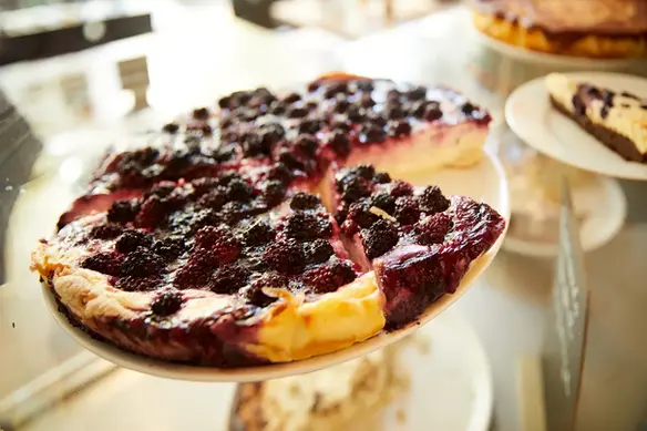 SCHON DAS SCHAUFENSTER zeigt, welch Geist in diesen Räumen herrscht: Zu lesen ist ein Gedicht vom deutschen Dichter Christian Morgenstern (1871–1914), das ein fiktives Gespräch zwischen Herrn Löffel und Frau Gabel zum Inhalt hat. Seit 2007 servieren Tanja und Dietmar Pies im Weidenstieg Frühstück (hausgemachte Brioche!), Mittag (wir hatten Quiche mit Pflücksalat) sowie Kaffee und Kuchen (Highlight: Schokoladenkuchen mit Beerengrütze und Sahne). 70 Prozent der Gäste sind Stammkunden. Die Einwohner leben seit vielen Jahren hier, die Geschäfte sind fest etabliert. Man kennt und schätzt sich. Viele starten ihren Tag in der „Speisekammer“, stärken sich hier am Mittag oder lassen gleich den Tag ausklingen. Die „Speisekammer“ ist dafür wie gemacht. „Die Lage zwischen Eppendorfer Weg und Christuskirche ist ideal“, findet Tanja, „verkehrsarm, charmant und nicht ohne Wirkung.“