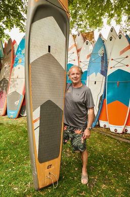 Die Gründungsgeschichte, erzählt beim eiskalten Rosé am Freitagnachmittag, Chris wedelt eine Romeo y Julieta Robusto in der Linken, beschreibt den Spirit hier perfekt: „family and friends“. Die zwei Herren im Anzug, die für eine Stunde auf dem Wasser Ruhe haben wollen, stehen zwei Minuten später in Shorts startklar am Steg. Man kennt sich, die Leute sind schon beim Passieren der unscheinbaren Gartenpforte entspannt. „Gute Laune ist das Thema hier“, lacht André. Sport und Bewegung lassen den Geist locker werden. Nadja gibt nicht nur Einsteigern Tipps zum Boarden, stellt ganze Schulklassen sicher auf die Bretter, sie gibt auch Yoga-Kurse, und drinnen in der Villa ist ein Boxing-Gym. Die Rettungswacht von Roten Kreuz Ostsee kommt zum Trainieren her. „Wir sind ein Jugendzentrum für Erwachsene“, meint Chris lachend. Für die Sportler, die nach dem Paddeln Hunger und Durst haben, hält die lässige Bude Kaltgetränke bereit und kleine Snacks, Chris kocht nämlich auch fantastisch. Wenn größere Gruppen den Fikki Beach mieten, setzt er eine Paella auf oder organisiert ein Barbecue.